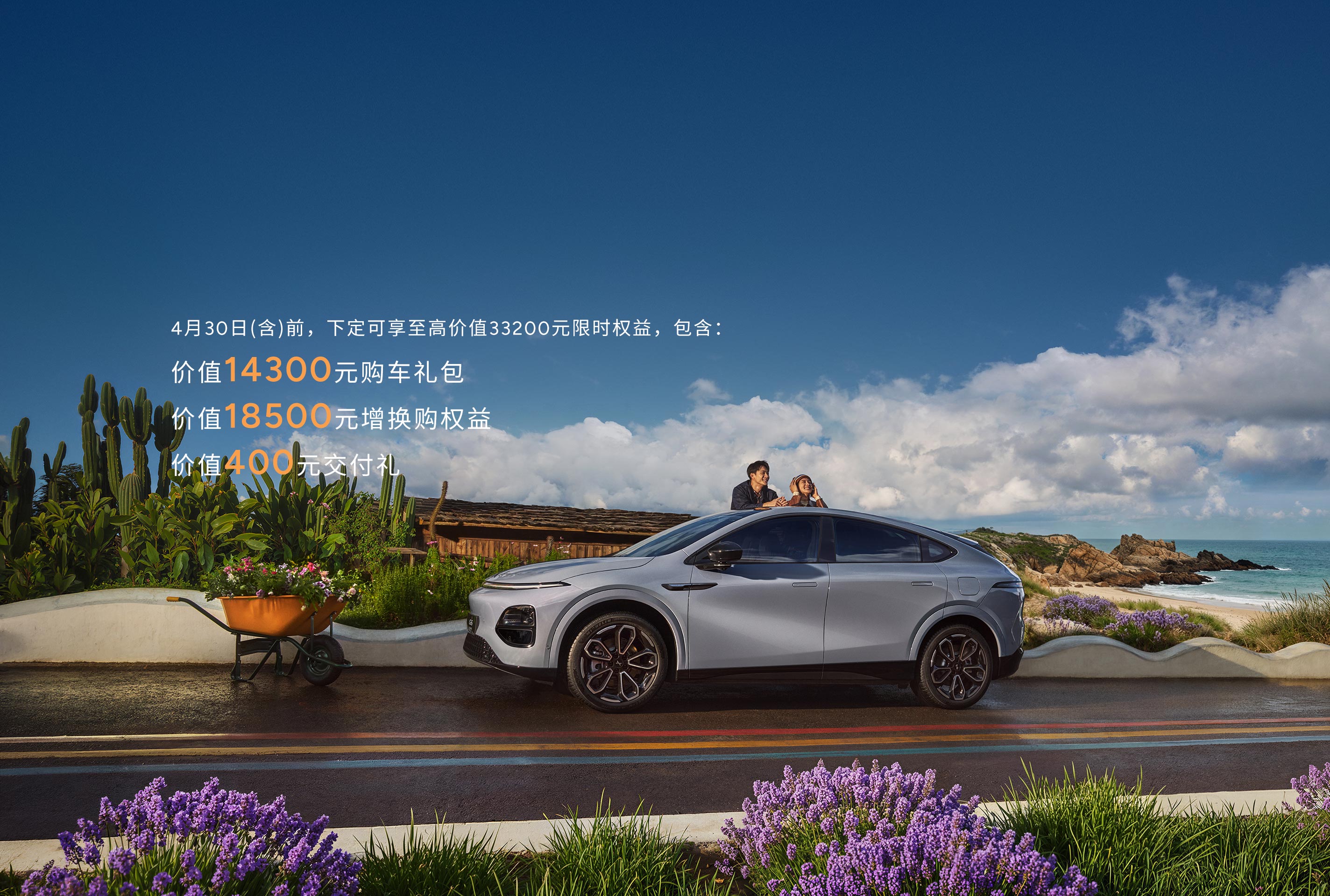 权益说明*:即日起至2026年4月30日下定可享33200元上市权益,具体包含8000元购车补贴、2年0息/3-7年低息金融方案或者3000元选装抵扣券(二选一);置换至高23000元车款减免;复购礼每年1500度免费权益电卡(6年);交付礼400元簇绒脚垫及随车U盘。1、购车补贴金额根据您所购车型的具体配置而定,最高可享8000元,具体政策详询当地小鹏汽车门店。2、选装抵扣券:可用于抵扣付费选装项目,若未选装或选装项目金额低于选装抵扣券金额,以实际选装金额进行减免,若实际选装金额超过选装抵扣券金额,则超出部分需要补差价。3、置换条件:A.置换客户需满足条件新老车主是同一自然人/公户、股东/法人或直系亲属关系;B.用于置换旧车需为非营运乘用车,且下定前原车主名下持有时间大于90天。置换权益兑现方式:经审核符合小鹏官方置换权益申请条件的客户,权益将在小鹏新车交交付后发放(现金折扣除外),客户旧车需在新车交付前交由小鹏汽车官方指定渠道完成收购(如旧车符合26年国补报废车以旧换新条件,需在新车交付之前提交旧车报废相关材料)。置换补贴23000元,包含小鹏汽车不限品牌置换补贴3000元、国家以旧换新补贴至高2万元。其中,国家以旧换新补贴规则,具体详情以有关部门官方公告为准。上述适用于2026年上市的车型,涉及小鹏汽车购车政策与权益活动周期为2026年4月1日~2026年4月30日,以定金支付完成时间为准,详情请咨询当地小鹏汽车销售门店。