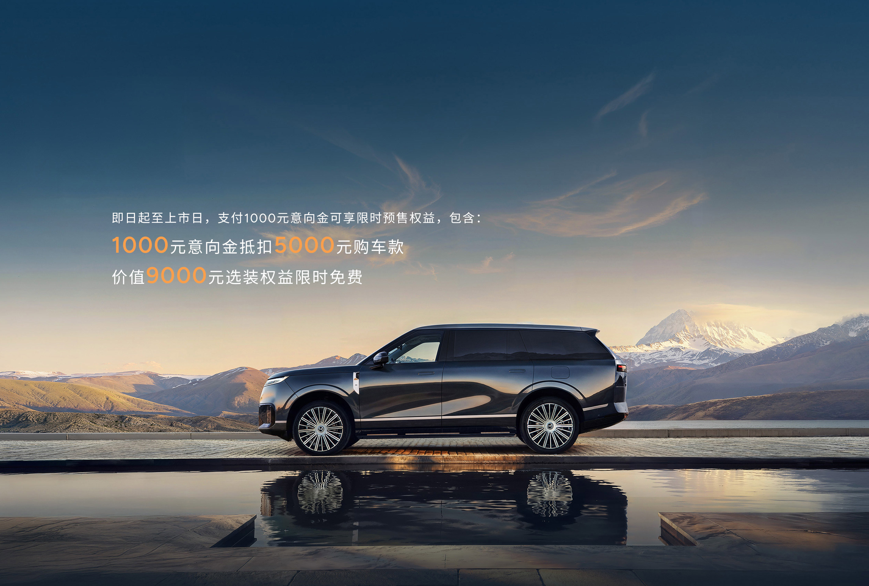 权益说明*:预订活动时间:2026年4月15日-上市日。限时预订权益含1000元意向金抵扣5000元购车款,价值6000元峡湾灰车漆限时免费,价值3000元林雾紫内饰限时免费。